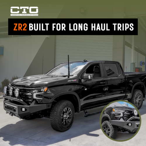 Image: This image is of a Chevrolet Silverado ZR2 touring build completed by CTO Industries featuring bull bar, drivi...